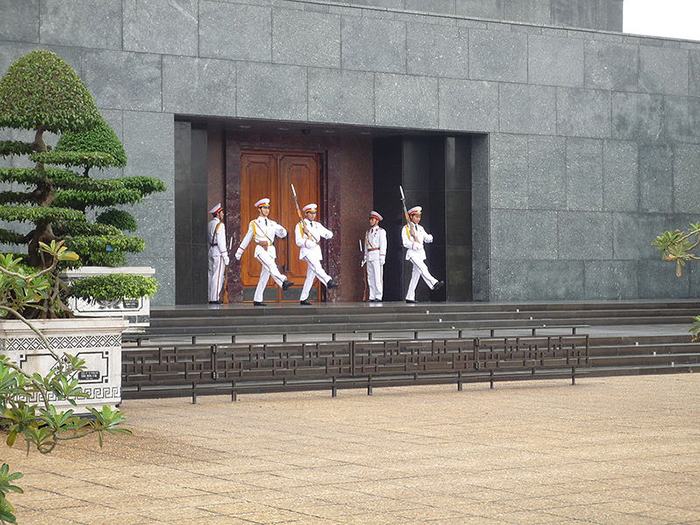 Одна из главных достопримечательностей Ханоя – мавзолей Хо Ши Мина. В переводе имя вождя означает “Несущий свет”. Интересно, что покоится Хо Ши Мин в светлой комнате, так что не вызывает никакого страха. Посещение мавзолея возможно только при соблюдении строго дресс-кода и в порядке очереди (а желающих побывать внутри всегда хватает).